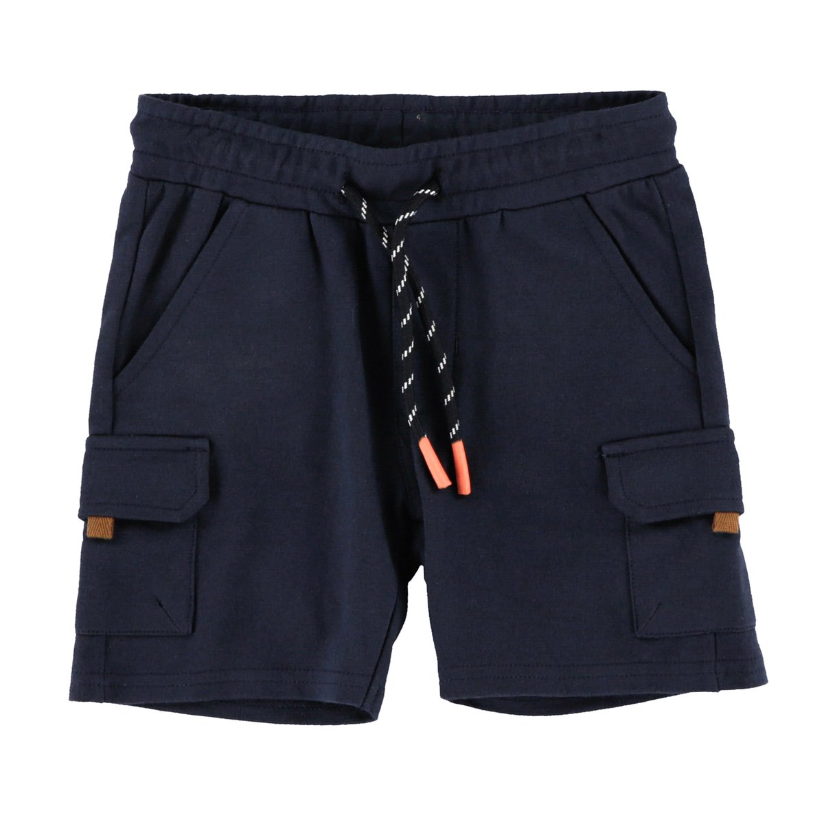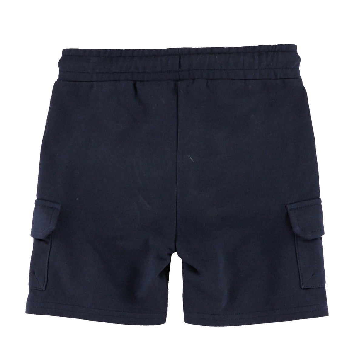 • Bermuda en coton français uni • Taille élastique à cordon coulissant • Fausse braguette • Multiples poches